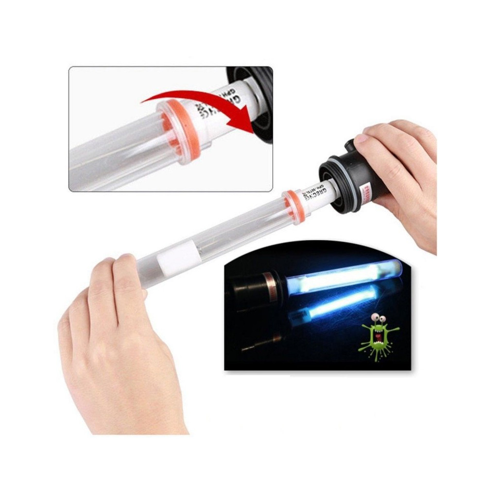 SUNSUN vnější UV lampa 3W pro akvária do 100 litrů objemu vody. Kompaktní UV-C lampa SUNSUN 3W pro snadné připojení na výstupní hadici externí filtrace. Efektivně potlačuje zelený zákal a volně plovoucí řasy, aniž by snižovala průtok vody.