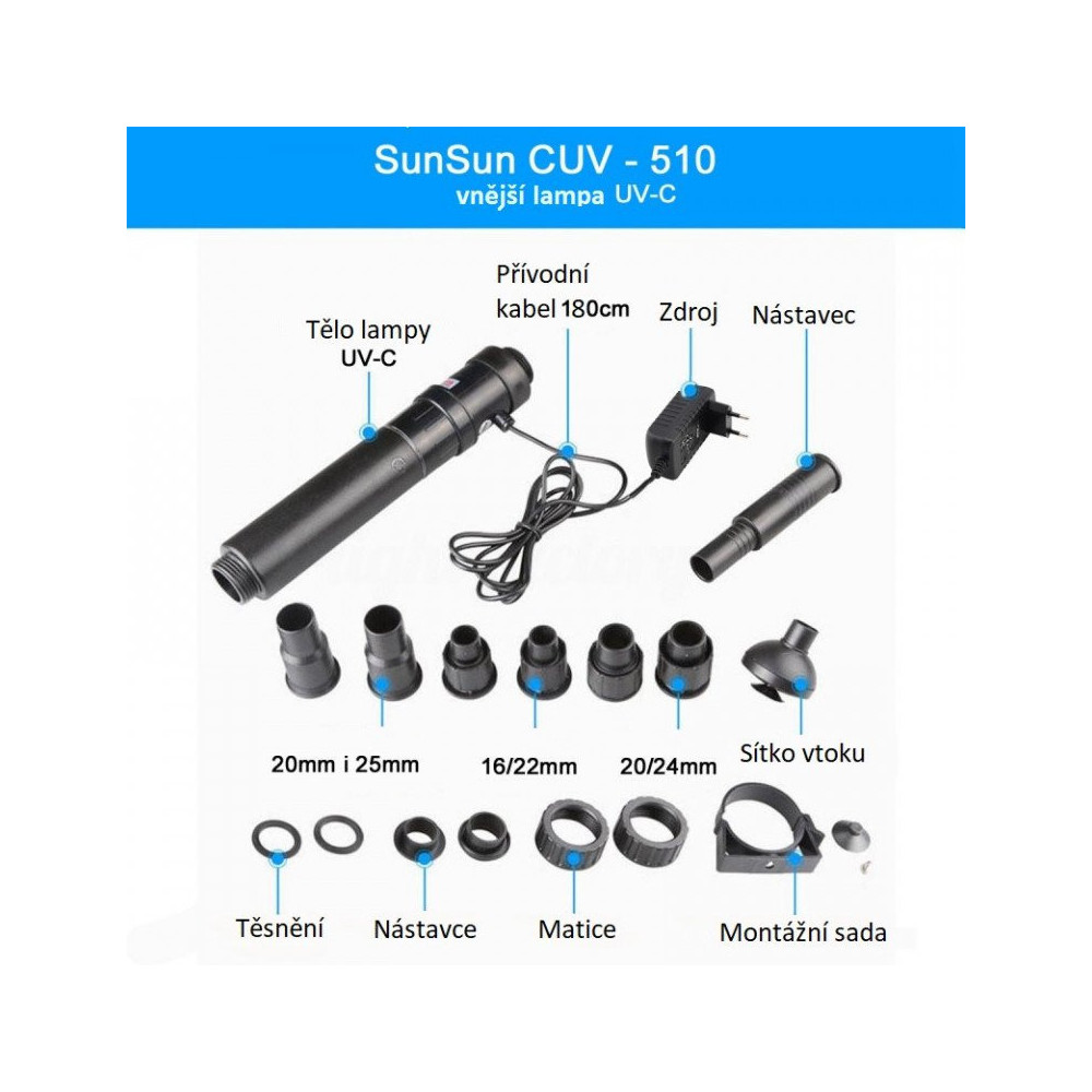 SUNSUN externí UV lampa 3W – kompaktní UV sterilizace pro čisté akvárium