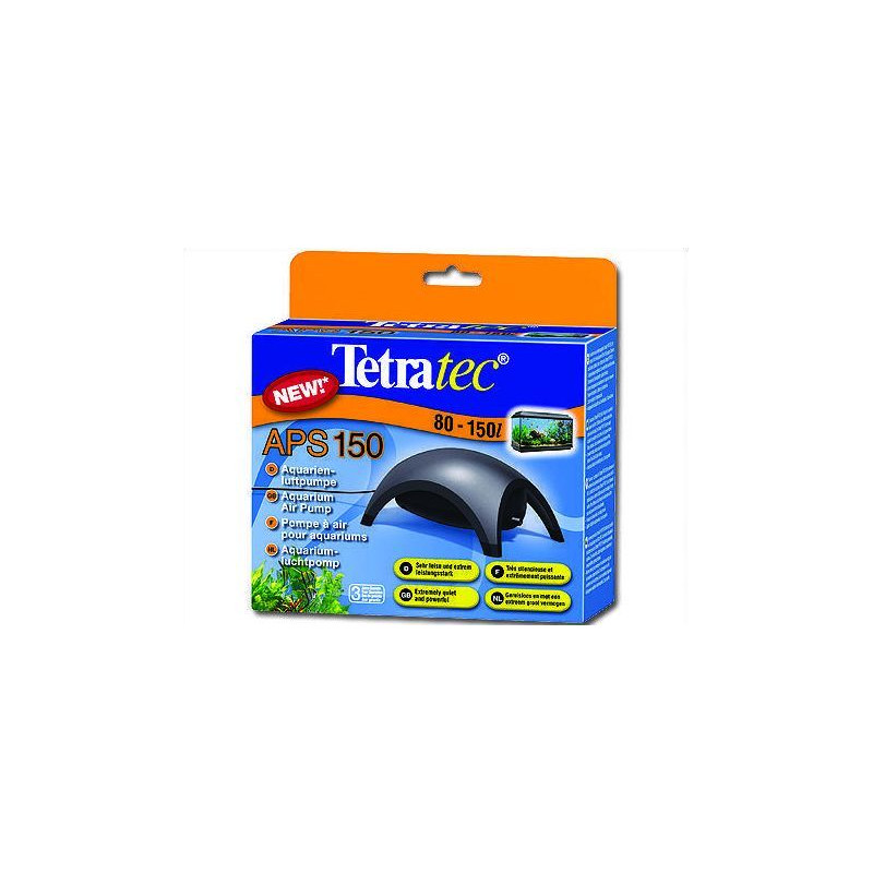 Kompresor Tetra APS 150 je ideální pro pohon vzduchovacích kamenů, dekorací nebo molitanových bublifukových filtrů. Díky příkonu pouhých 3,1 W je jeho provoz vysoce úsporný i při nonstop běhu.