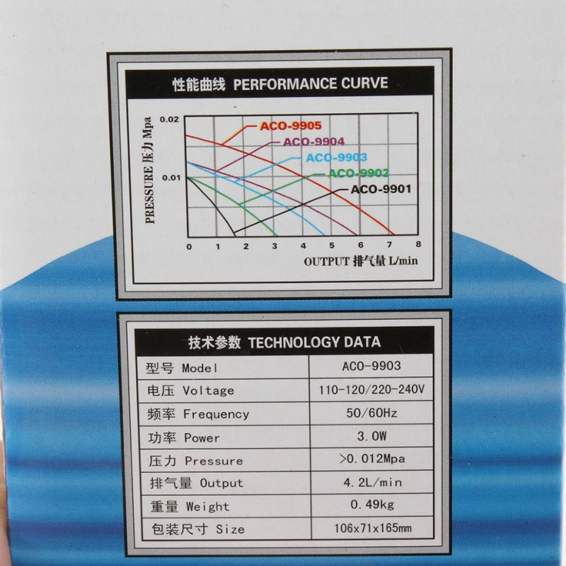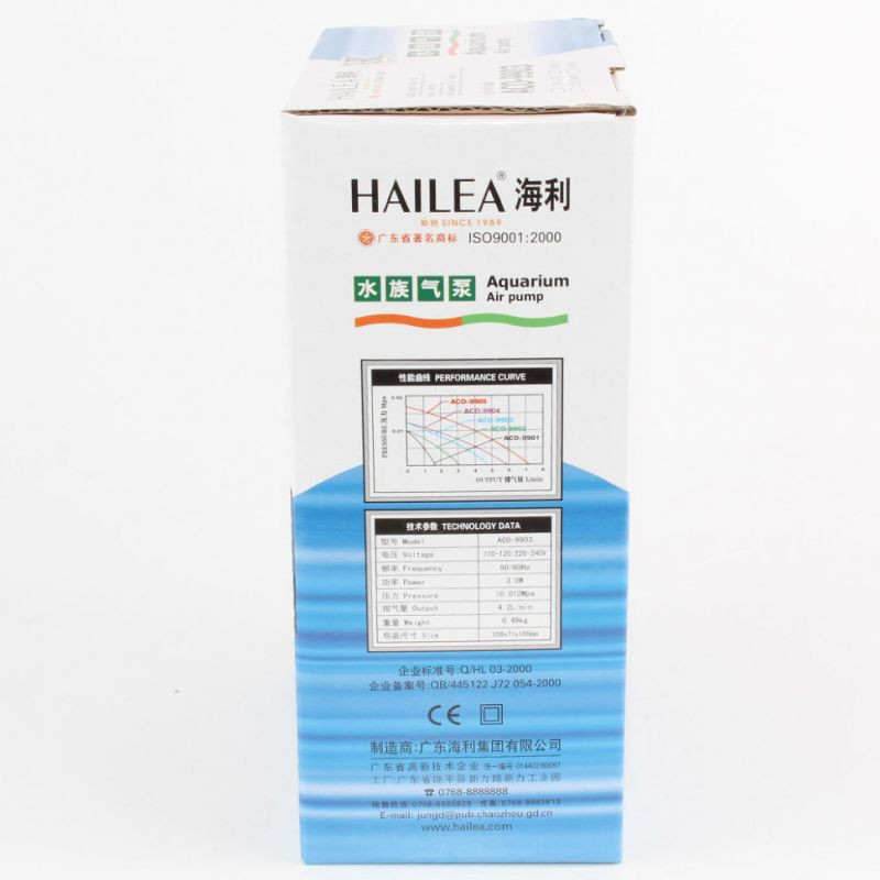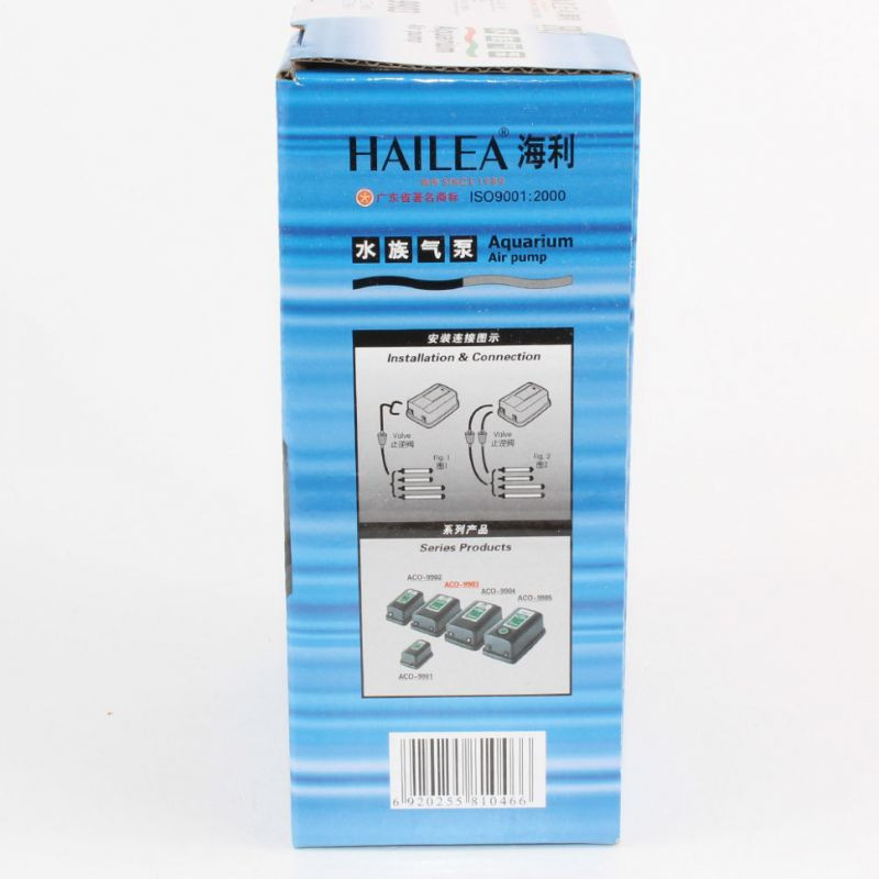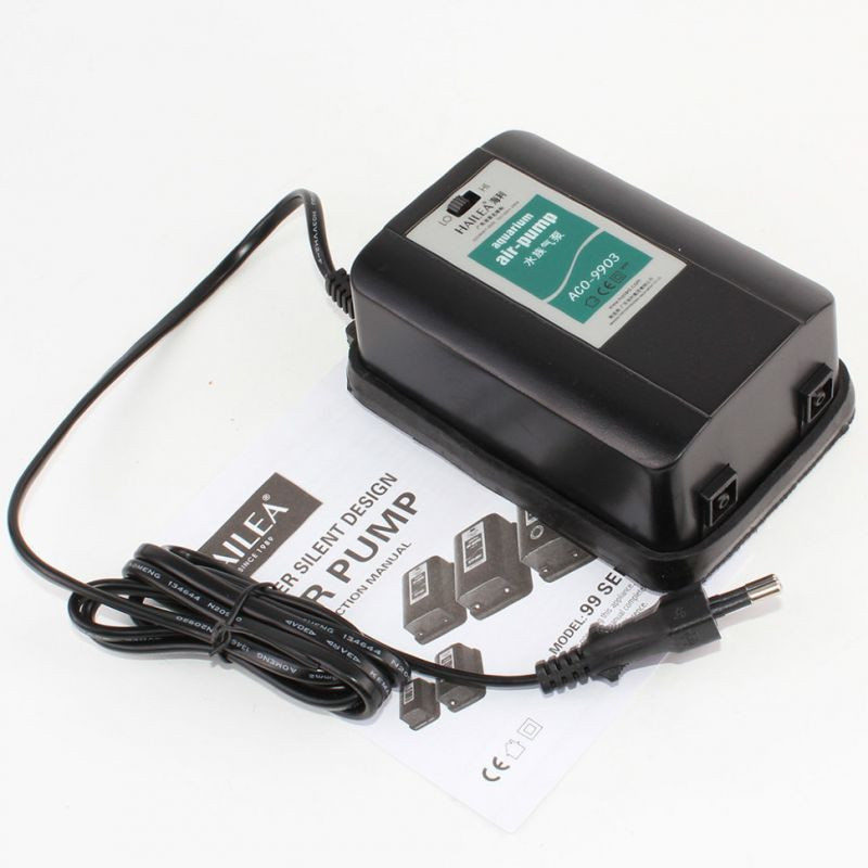 Akvarijní vzduchovací kompresor Hailea ACO-9903, max. 252 l/h, pro nádrže 120 - 300 litrů. Membránové vzduchové čerpadlo (vzduchovadlo), díky kterému dodáte do vody akvária životně důležitý kyslík tolik potřebný pro všechny vodní živočichy,
