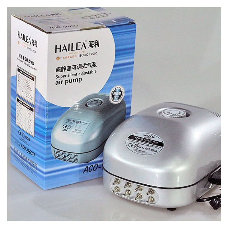 Vzduchování do akvária Hailea ACO-9630 je vzduchovací kompresor, na který můžete připojit až osm hadiček na rozvod vzduchu.