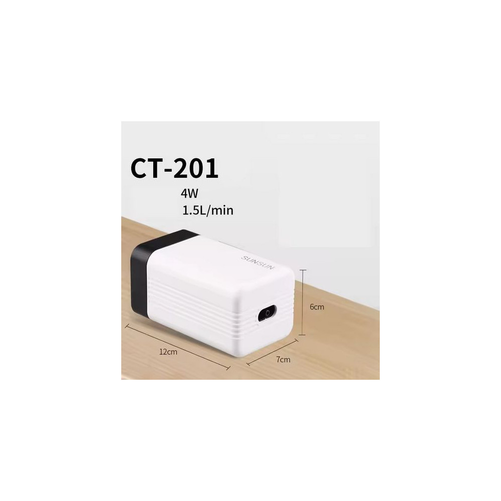 Vzduchovací motorek Sunsun CT-201 1,5l/h je užitečným profesionální produktem pro akvaristy. Akvarijní kompresor s ovládáním množství vzduchu pro udržování zdravého akvária a pohodu ryb a rostlin v něm.
