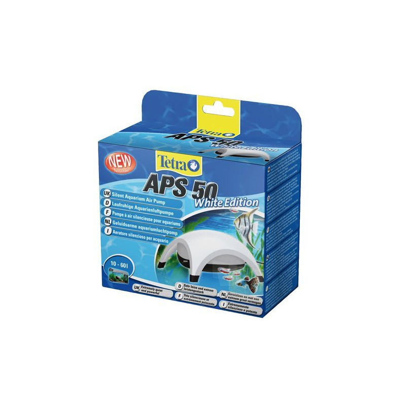 Akvarijní vzduchovací motorek Tetra APS 50 l/h, 2W je kompresor pro akvárium o objemu 10 - 60 l. Akvarijní vzduchovadlo APS 50 můžete jednoduše připojit na běžné akvarijní hadičky a snadno obsluhovat. Vzduchování do akvária je poměrně velmi tiché a výkonné. Patentovaný ventil Silaflex si trvale zachovává svůj tvar a spolu s robustní membránou zaručuje rovnoměrné rozvinutí výkonu a dlouhou životnost. Příjemně tichý chod díky zvukotěsným komorám a nové technologii, pevnému krytu a speciálním gumovým nožičkám, tlumícím vibrace. Akvarijní kompresory Tetra se vynikají vysokou kvalitou a spolehlivostí. Stabilní množství vzduchu zajišťují odolné membrány.