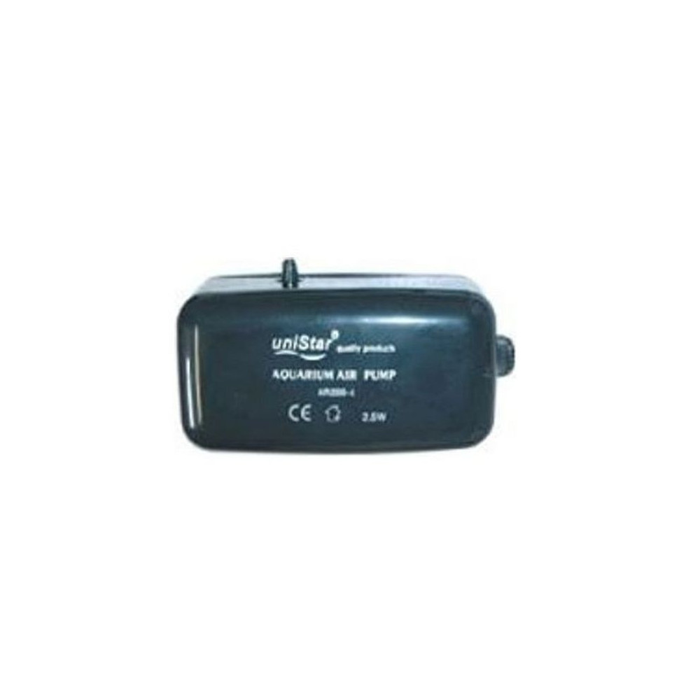 Vzduchování pro akvárium UnionStar Air 2000-4, 270 l/h. Akvarijní kompresor - vzduchovací motorek UniStar AIR 2000 - 4 je určený pro akvária o velikosti 50 - 400 l. Relativně velice tichý, s nízkou vibrací díky silnostěnnému plastovému pouzdru.