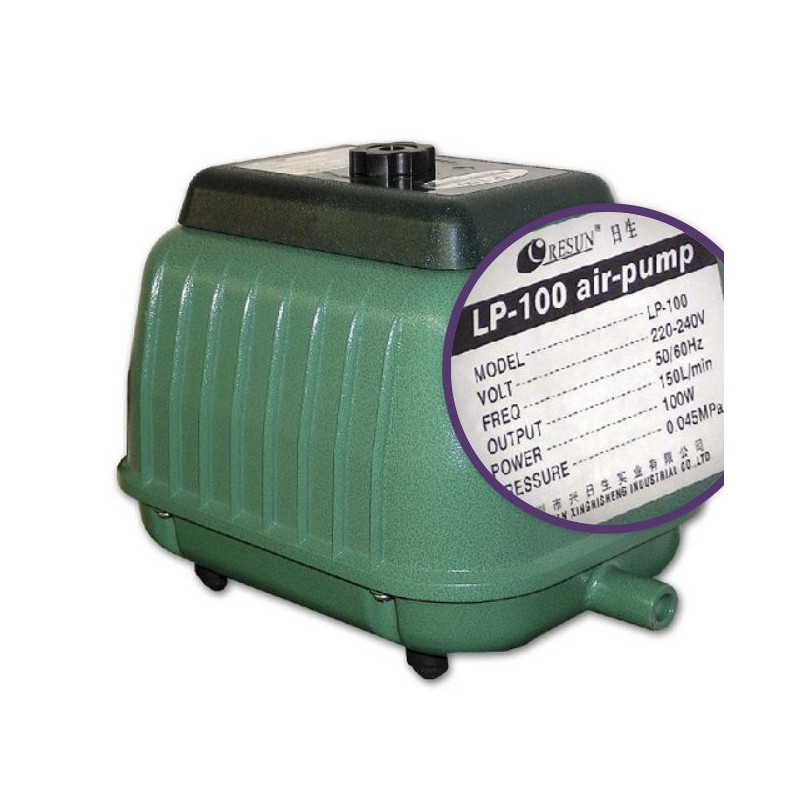 Vzduchovací kompresor Resun LP-100, 8400 l/h pro použití v akvaristických obchodech, pěstírnách, rybníčcích a líhních. Výhodou LP-100 je relativně bezhlučný provoz - výborný poměr výkon/cena - ekonomický provoz - moderní design - bezolejové mazání, výkonné s dlouhou životností - dvojitý tlumící skelet, hospodárný motor vyhovující ekologickým požadavkům. Membránová dmychadla ("želvy") jsou novou generací estetických a vysoce funkčních vzduchovadel s prakticky neomezenou dobou života. Nemají žádné kluzné nebo třecí plochy, které by se časem opotřebovaly. Pohyblivé gumové komponenty (vydrží min. 25 až 30 tis. hodin provozu) jsou lehce a levně vyměnitelné.