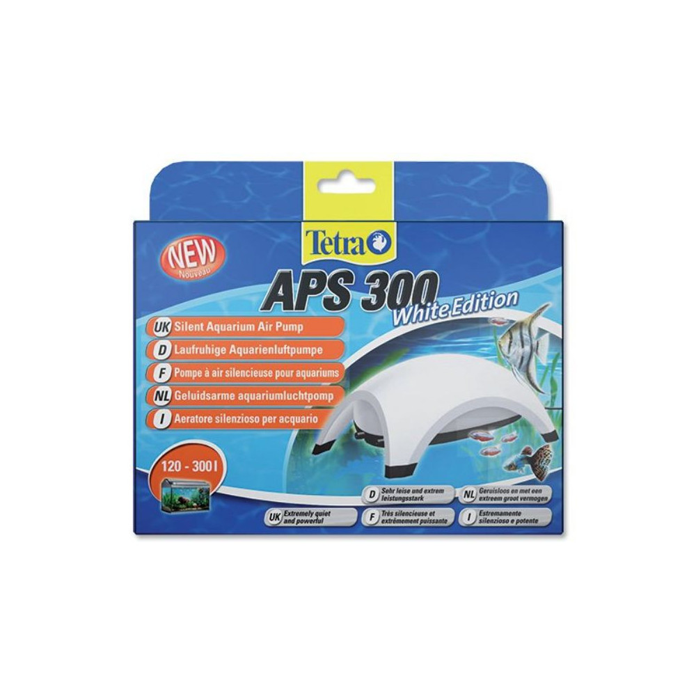 Tetra APS 300 – Výkonný a tichý kompresor pro akvária 120–300 l. Disponuje dvěma výstupy pro flexibilní vzduchování. Patentovaná membrána Silaflex zaručuje dlouhou životnost. Včetně regulačních kohoutů.
