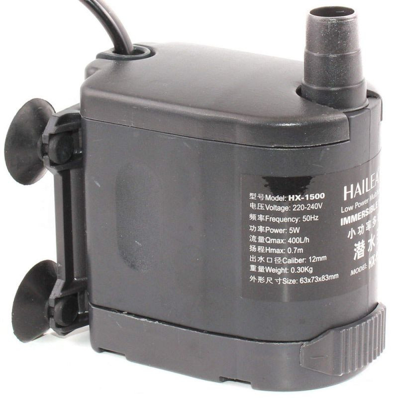 Multifunkční akvarijní čerpadlo Hailea HX 1500, 400l/h, 5W. Cirkulační čerpadlo HX-1500 můžete použít {cerpadlo_hx-1500} pro akvária se sladkou nebo mořskou vodou, malá jezírka, fontány a pro jakýkoli účel v domácnosti vyjma potravinářství. Proud vody z čerpadla zajišťuje promíchání a také rovnoměrné rozložení teploty vody po celém akváriu. Čerpadlo je vybaveno tryskou pro provzdušňování vody, která umožňuje nasytit vodu kyslíkem. Tryska pro směr proudění se otáčí o 360 stupňů a umožní vám vytvořit rovnoměrný proud v celém akváriu. Hladké nastavení. S mechanickým regulátorem průtoku snadno nastavíte intenzitu proudu vody. Hřídel rotoru je vyrobena z nerezové oceli, vhodná pro sladkou i mořskou vodu. Skříň čerpadla má speciální mechanický předfiltr, který neumožňuje pronikání velkých nečistot. Čerpadlo funguje pouze při ponoření.