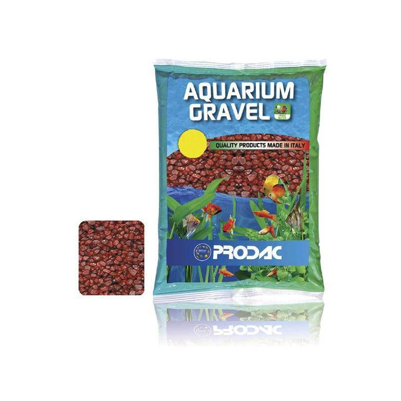 Akvarijní písek Prodac červený s minimem ostrých hran, který je vhodný pro všechny druhy akvarijních ryb i rostlin.