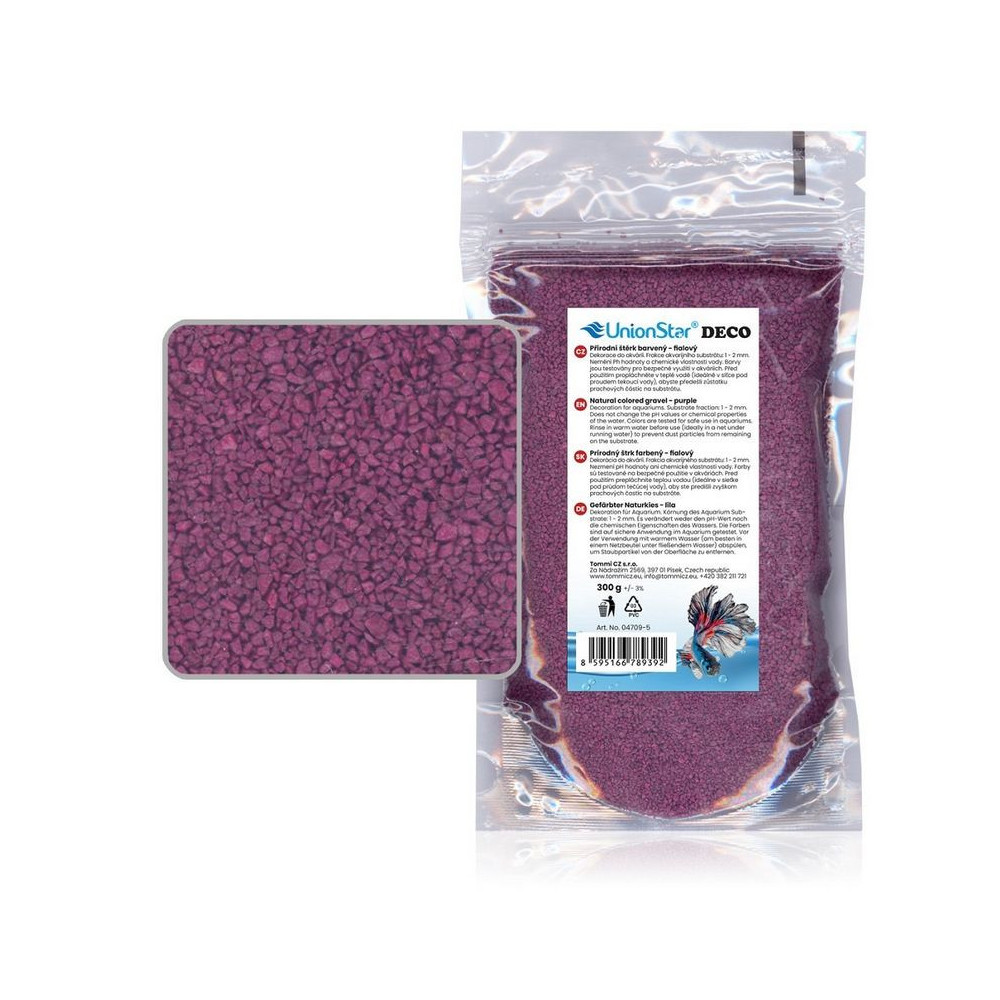 Fialový akvarijní štěrk DECO 300 g (1–2 mm) – dekorativní přírodní substrát pro sladkovodní akvária. Bezpečný pro ryby, rostliny i krevetky.