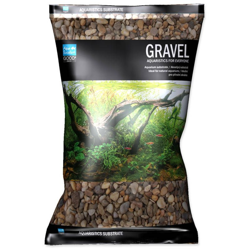 Akvarijní písek přírodního zbarvení značky Aqua Excellent 8 kg a zrnitosti 8-16 mm.
