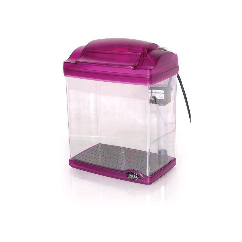 Plastový akvarijní set (sada, komplet) FC-200-2 Hailea - fialový kryt s osvětlením 5W. Akvárium pozitivně působí na naše zdraví a radost ze života. S akváriem se stane každý Váš všední den nevšedním. Akvarijní komplet s vybavením vhodný pro začínající akvaristy - model FC-200. Součástí výrobku je osvětlovací kryt se zářivkou 5W, půdní filtr a čerpadlo. 4 barevná provedení (modrá, stříbrná, černá, fialová). Dno akvária můžete vytvořit dle vlastních představ pomocí barevného písku a konečný vzhled upravit přidáním pěkné akvarijní dekorace a vodní umělé rostliny.