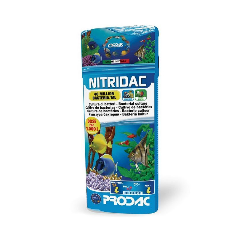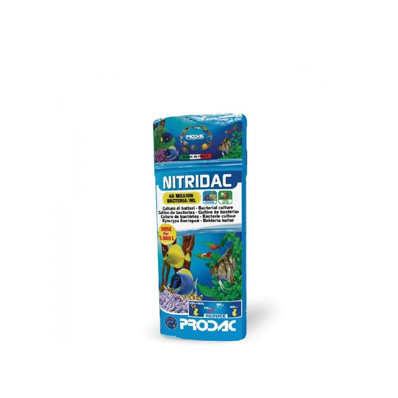 Prodac Nitridac 100 ml - vysoce koncentrované živé bakterie pro čisté a zdravé akvárium. Odbourává čpavek, dusitany a fosfáty. Ideální při založení akvária i pravidelné údržbě.
