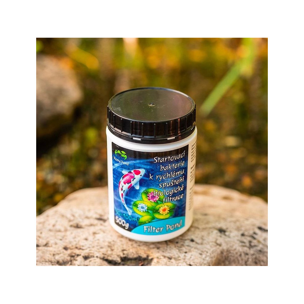 Jezírkové bakterie Filter Pond 500 g pro filtr zahradního jezírka a rybníček o objemu 50 až 100 m3 vody. Filtrační bakterie do jezírka Home Pond, kterým se také říká startovací bakterie, jsou nezbytnou součástí biologického čistění jezírka.