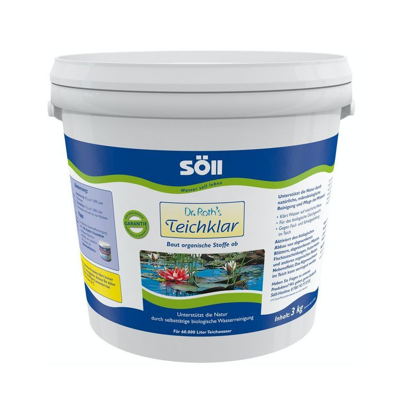 Jezírkový přípravek proti řasám Teichklar Söll - Dr. Roth’s ClearPond 3 kg čistí vodu v rybníčku do 60000 l biologickou cestou.