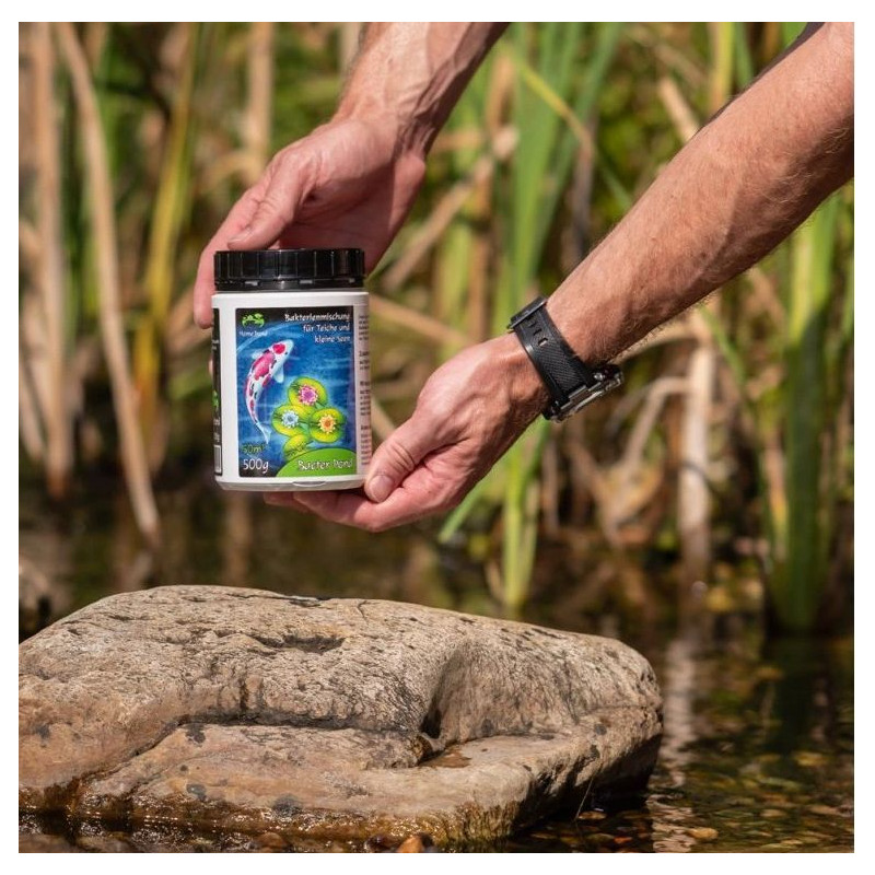 Home Pond startovací jezírkové bakterie Bacter Pond 100 g na cca 10 m3 pro rychlou nápravu při problémech s vodou. Bakterie do jezírka BACTER POND jsou vhodné pro aplikaci do teplejší vody nad 10 °C optimálně 13 °C. Velmi rychle se pomnožují a vytváří biofilm, tím odstraňují živiny a opětovně nastavují biologickou rovnováhu. Vzácně se může stát, že se po aplikaci voda trošku zakalí, ale do několika dnů se opět vyčistí. Nelze předávkovat.