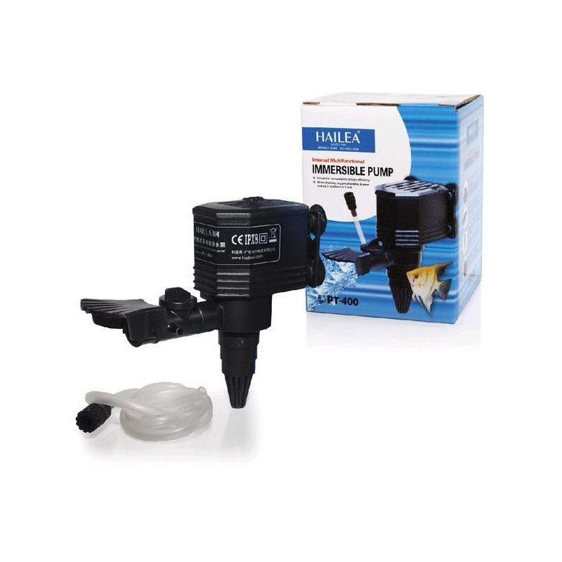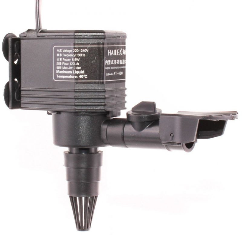 Přivzdušňovací - čerpací hlava - akvarijní Hailea PT-400, 420 l/h, má nízkou spotřebu elektřiny a vysokou efektivitu při přečerpávání vody, okysličování a tvoření vln. Akvarijní čerpadlo je možné připojit na filtrační molitan a díky tomu vytvořit filtr do akvária. Čerpadlo je provozně stabilní a tiché. Vestavěná tepelná ochrana zajišťuje, že se čerpadlo nepřehřeje. Jedná se o bezpečné a spolehlivé zařízení - rotor je instalován pod krytem, který se dá jednoduše otevřít a komora rotoru snadno vyčistit. Akvarijní čerpadlo je vybaveno regulátorem průtoku , kdy průtok vody lze libovolně nastavovat, výstupní trysky je možné libovolně směrovat. Součástí balení je sací hadička s regulátorem pro přívod vzduchu, který zvyšuje přísun kyslíku do vody akvária.