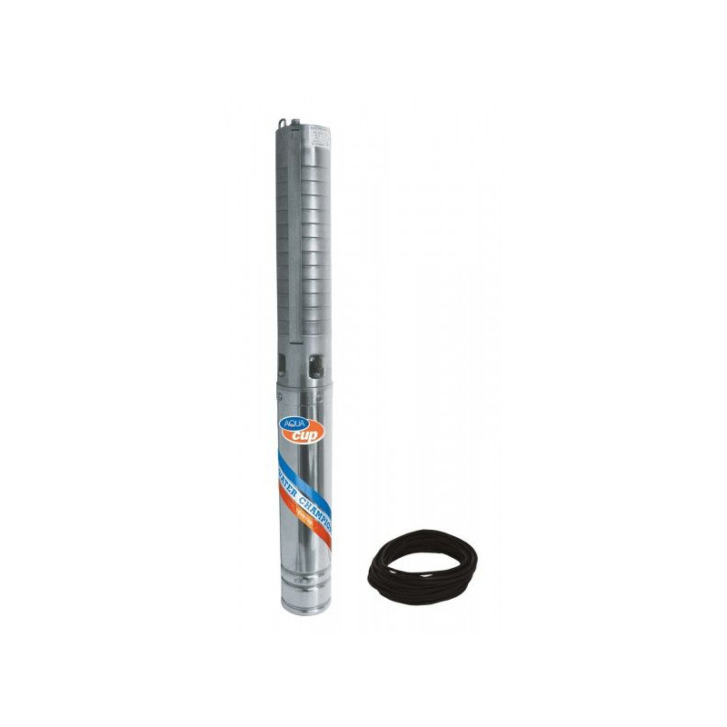 Aquacup ELECTRA INOX 70/62 M (230V) – Vysoce odolné celonerezové 4" čerpadlo s motorem řady AQ a 25m kabelem. Nabízí výtlak 62 m a průtok 4 200 l/h. Díky své článkové vícestupňové konstrukci a průměru 96 mm je ideální pro stavbu domácích vodáren, tlakové stanice a náročné zavlažovací systémy z vrtů i studní.