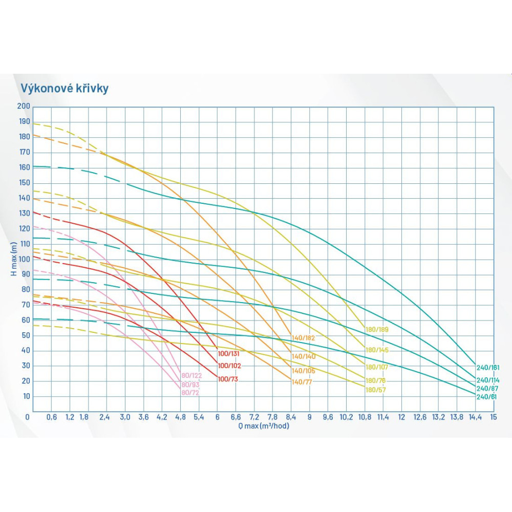 Vícestupňové ponorné čerpadlo 4" ELECTRA 80/93 M, 4800 l/h, max. 93 m, s 25m kabelem, v provedení motoru 230 V je dodáváno s ovládací elektroskříní. Studniční čerpadlo Aqucup Electra 80/93 M má průměr 96 mm a je vhodné do vrtů o minimálním průměru 100 mm a lze je použít pro zavlažování, přečerpávání a na stavbu domácích a průmyslových vodáren.