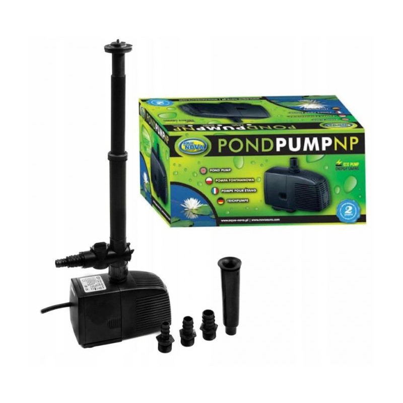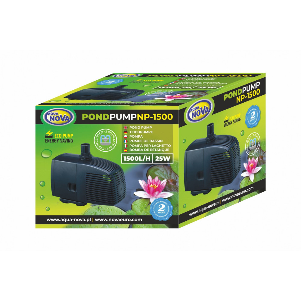 Jezírkové čerpadlo NP-1500 l/h, výtlak max. 2,5 m, 25W, s fontánovými nástavci, najde uplatnění jako čerpadlo na fontánu, vodotrysk a cirkulaci vody v zahradním jezírku. Výhodami tohoto čerpadla jsou jednoduchá údržba, vysoký výkon a nízká spotřeba elektrické energie. Dlouhou životnost zajišťuje keramická osa, odolná proti korozi a vodě.