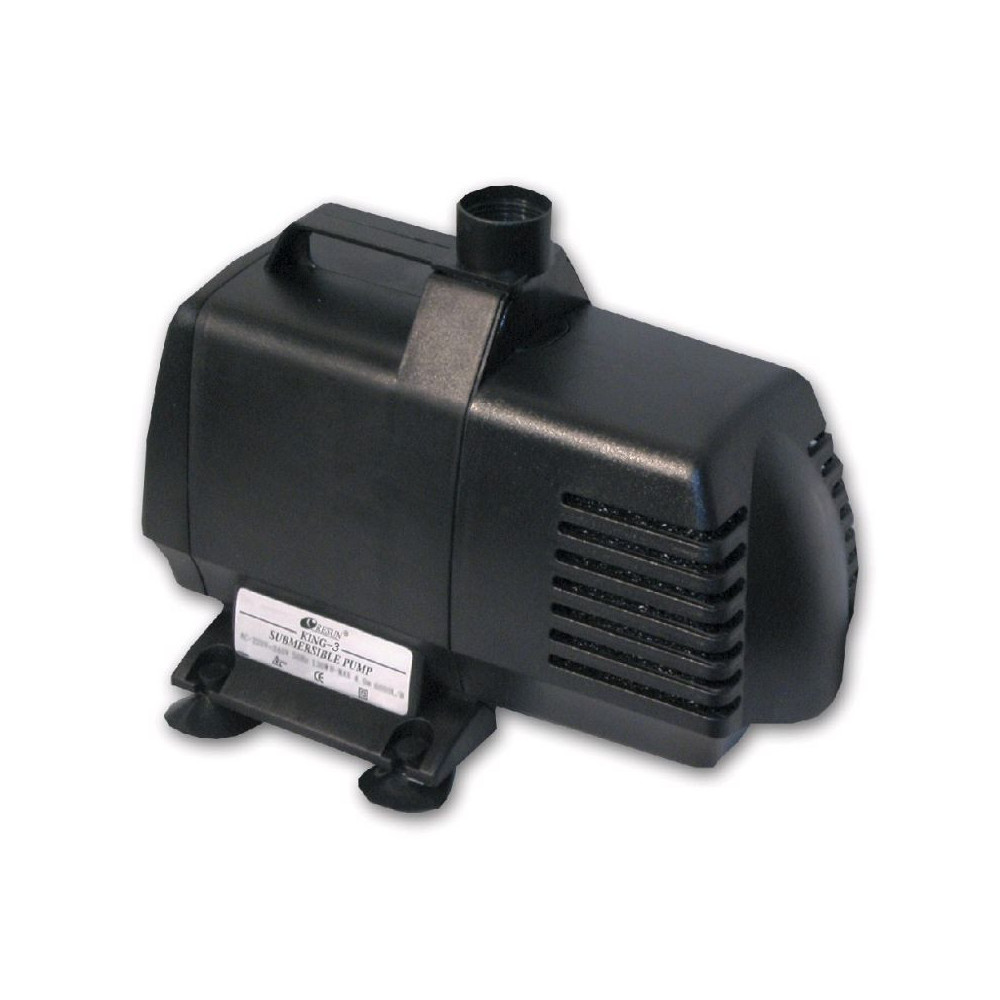 Čerpadlo Resun KING 3 ocení majitelé menších až středně velkých jezírek, Průtok 2400 l/h, 35W. Lze využít jako potůčkové čerpadlo, pohon zahradní fontány, filtrační čerpadlo nebo čerpadlo na slanou vodu.