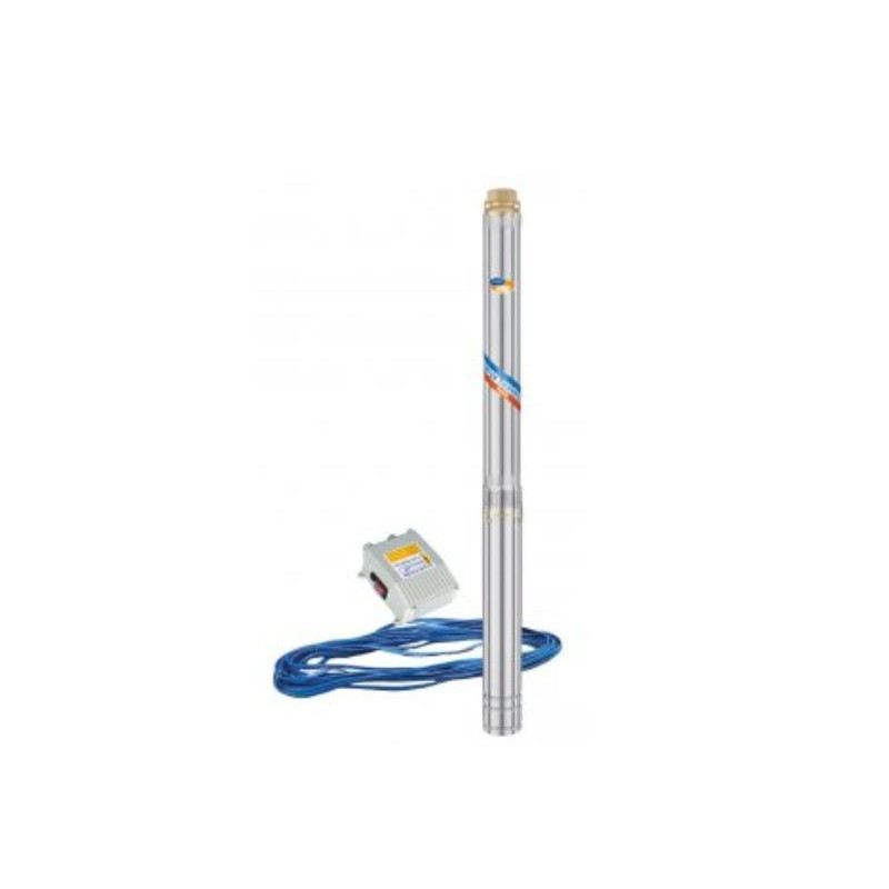Ponorné studniční čerpadlo ELECTRA 3,5" 45/100, 2700 l/h, dopravní výška 100 m s ovládací skříní a kabelem 25 m které lze použít např. jako čerpadlo pro vrtané studny, čerpadlo do studny, čerpadlo pro závlahy. Čerpadla Aquacup ELECTRA jsou vhodná pro čerpání čisté a dešťové vody.Vícestupňové ponorné čerpadlo o průměru 83 mm s 1,5 m kabelem, vhodné pro domácí použití a průmyslové vodárny, zavlažování atd., v provedení motoru 230 V. Čerpadla do studny Electra mají průměr 83 mm a jsou vhodná do hlubokých vrtů o minimálním průměru 90 mm a lze je použít pro závlahu, přečerpávání a na stavbu domácích vodáren.