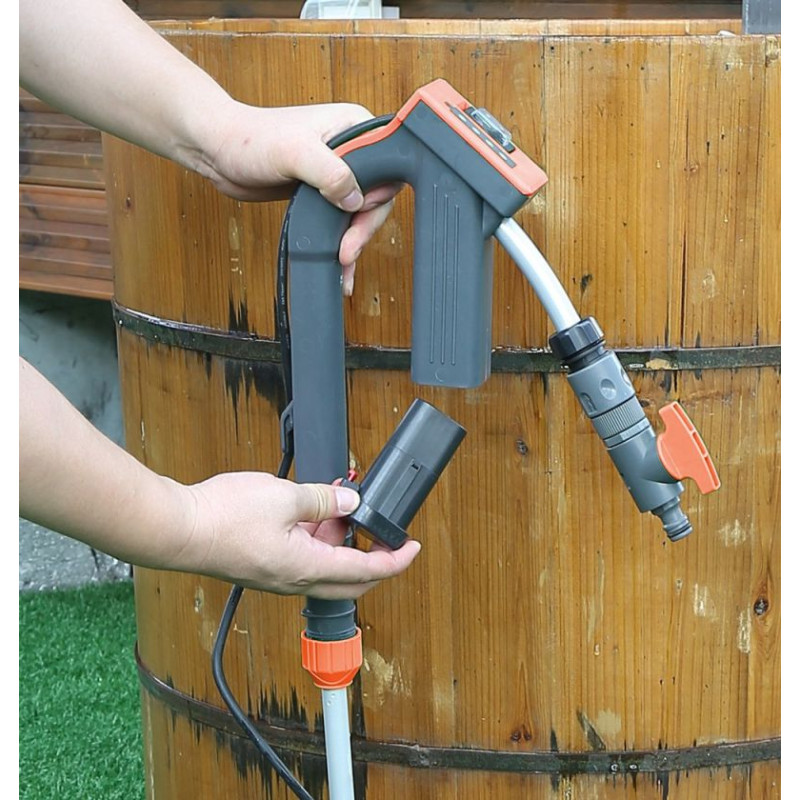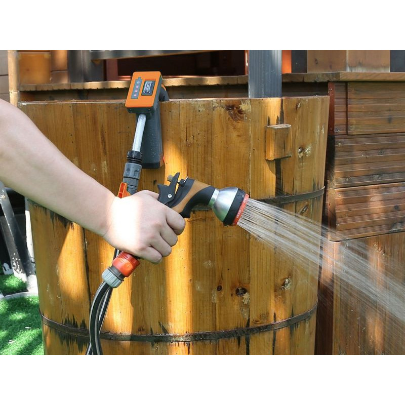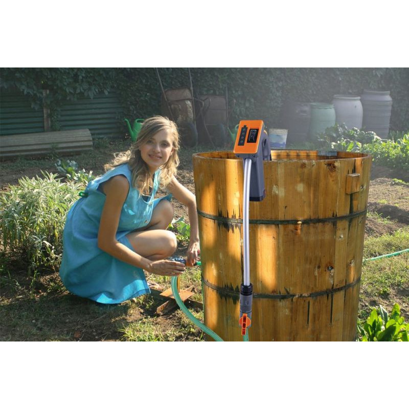 Čerpadlo má vysoký průtok, takže dopraví vodu pomocí hadice poměrně daleko. Pokud máte více sudů, doporučujeme mít další dobíjecí baterie.