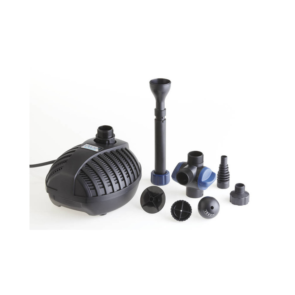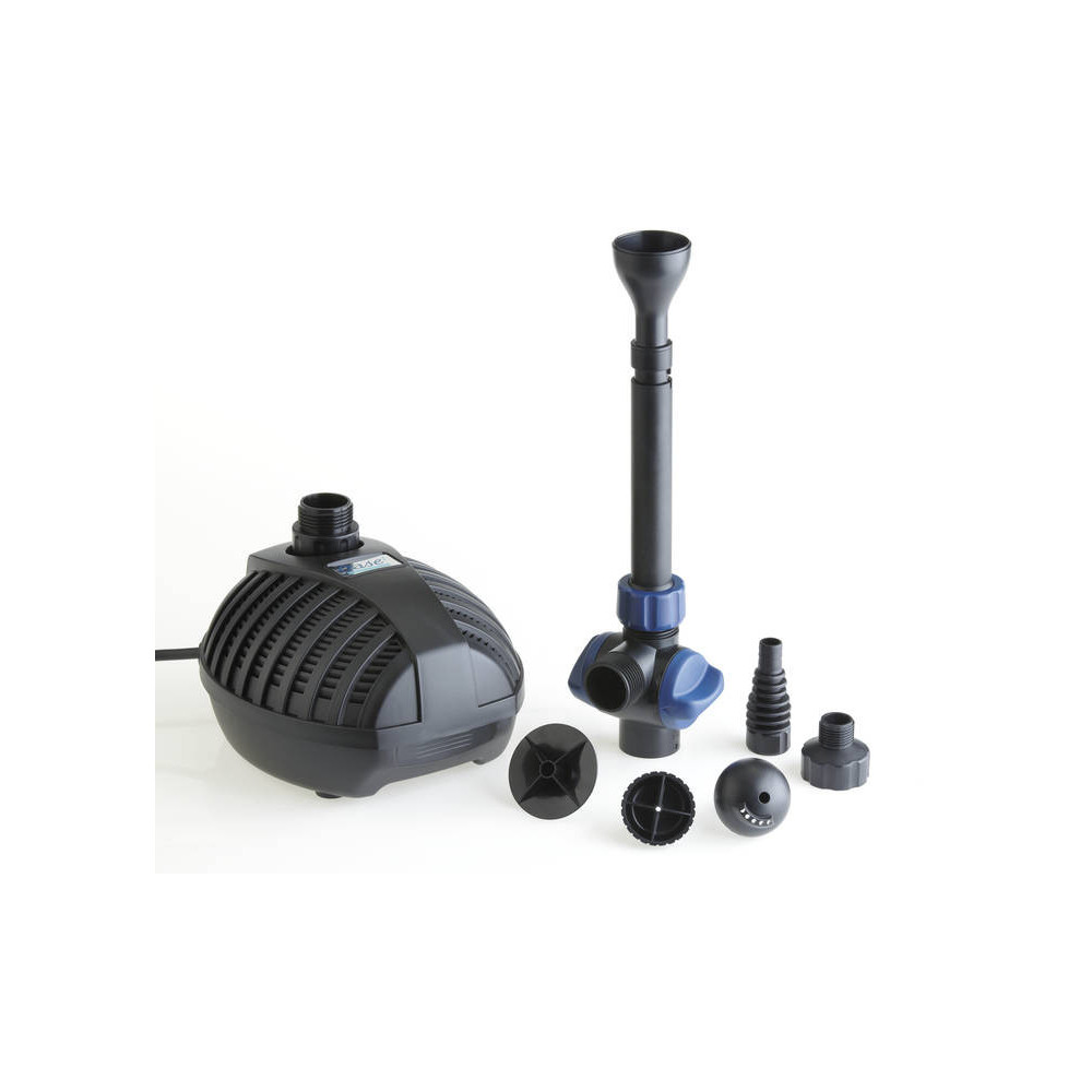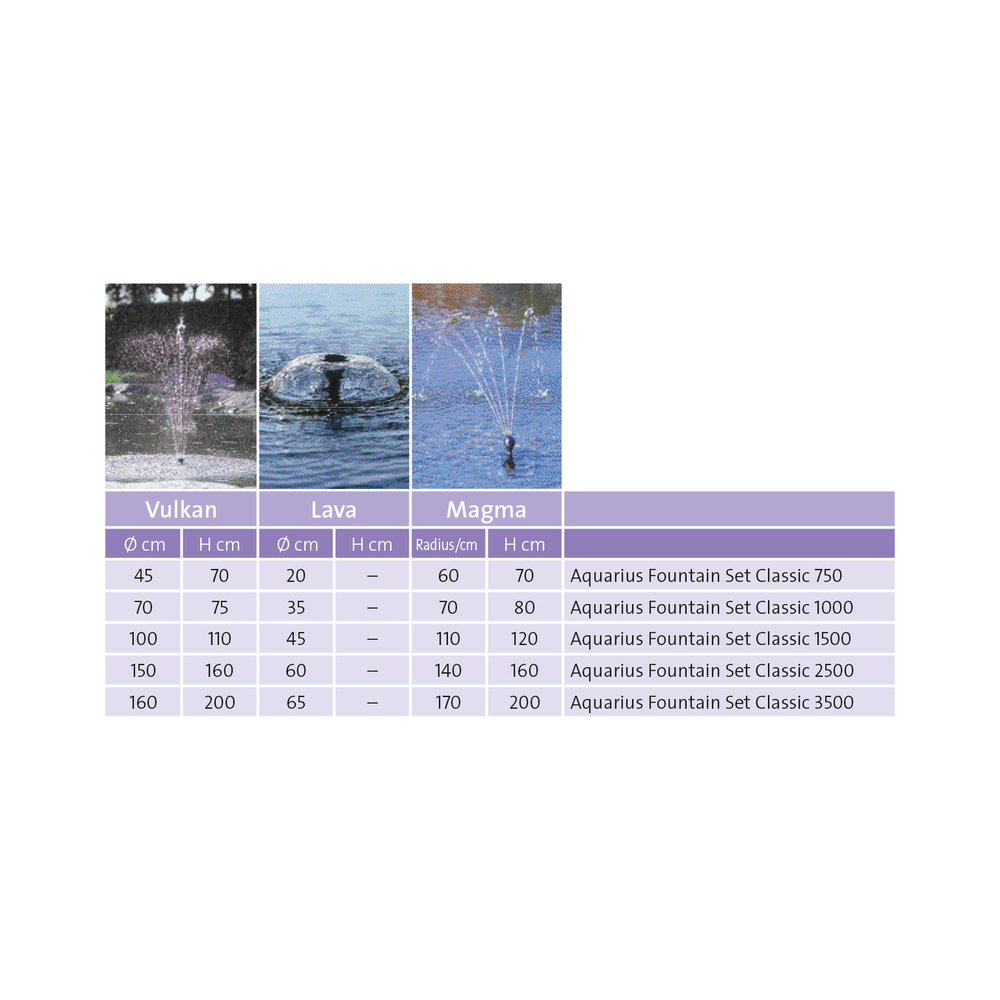 Součástí sady jsou 3 vyměnitelné fontánové trysky (Vulkan, Lava a Magma), které umožňují snadno měnit tvar a charakter vodotrysku. Díky plynule regulovatelnému průtoku si můžete efekt přizpůsobit velikosti jezírka i vlastním estetickým představám.