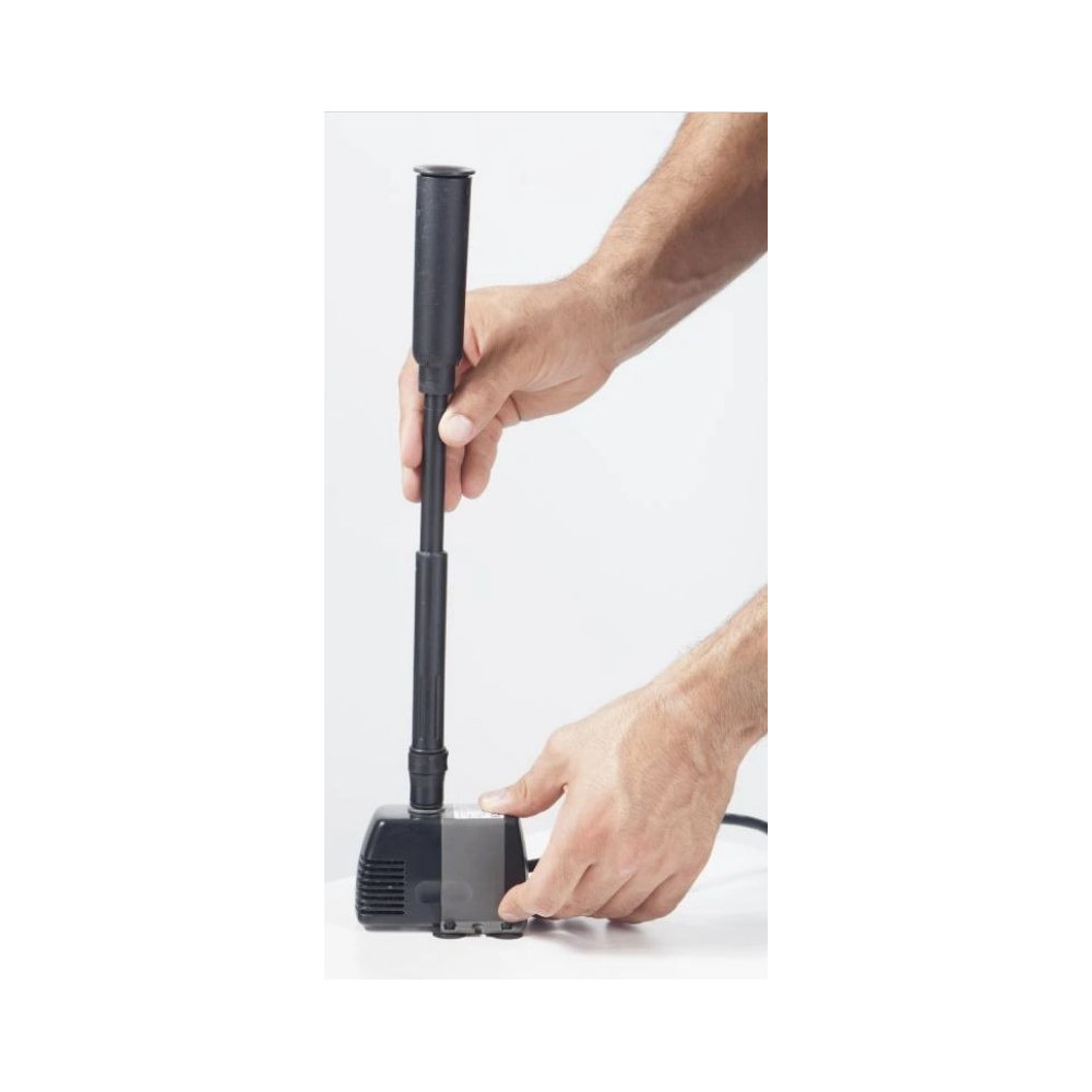 K čerpadlu připojte hadici (není součástí). Vývod hadice umistěte dle požadavku na vrchol fontánky.
