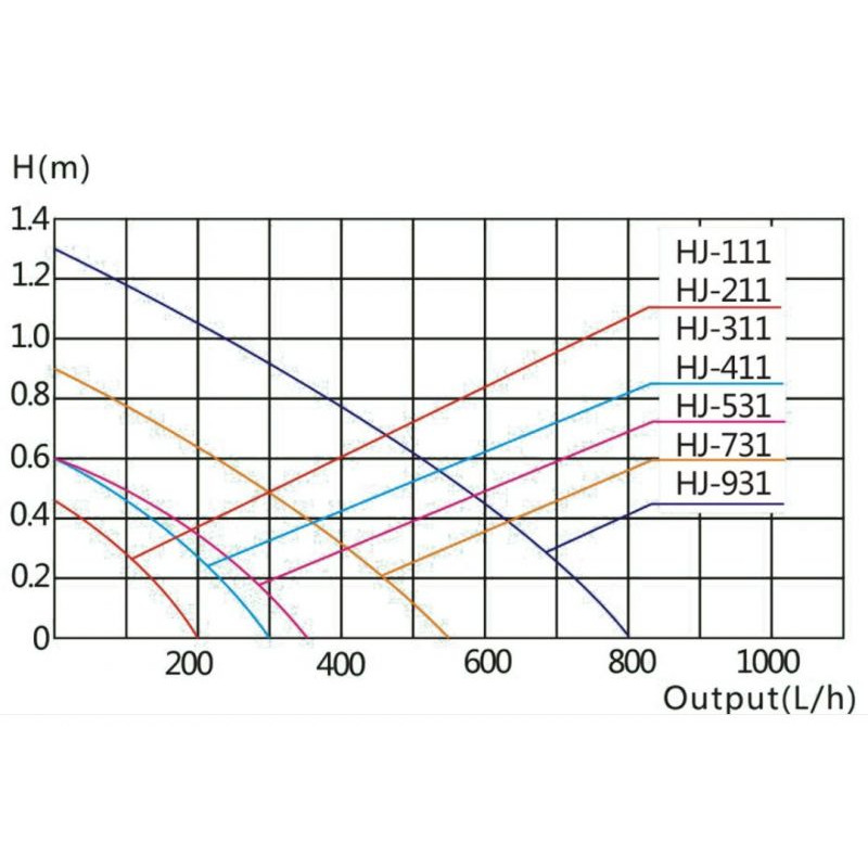 Víceúčelové čerpadlo HJ-311, průtok 300 l/h, příkon 2W. Jeho oblíbenost pro různé aplikace včetně instalace do pokojových fontán, kočičích pítek a v akvaristice, z něj činí vyhledávanou vodní pumpu..