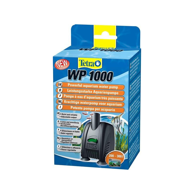 Výkonné akvarijní čerpadlo Tetra WP 1000 s regulací průtoku. Odolná vrtulka čerpadla Tetra WP 1000 zaručuje dlouhou životnost a spolehlivost. Výhodou je snadná udržba. Tetra vodní čerpadla jsou dodávána ve třech různých velikostech pro akvária až do 300 litrů.