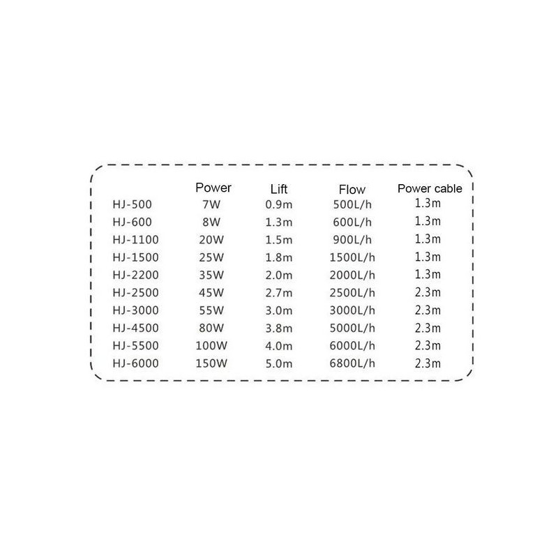 Čerpadlo HJ-1100 bylo vyvinuto pro pohyb vody v akváriích, fontánách, chrličích a dalších vodních prvcích.