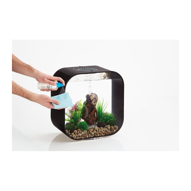 Přípravek je antistatický,odpuzuje prach a povrch akvária je pak odolný vůči otiskům prstů.