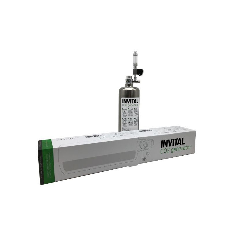 INVITAL CO2 Generator s nočním vypínáním s 2l lahví. Kompletní CO2 systém pro hnojení akvária je připraven k použití téměř okamžitě po vybalení z krabice. Poskytuje rostlinám lehce stravitelný oxid uhličitý.