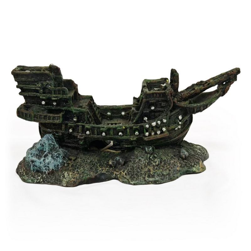 Dekorace PO-058 Vrak lodi velký. Detailní zpracování této lodi vytváří v akváriu jedinečnou atmosféru. Poskytne vašim rybám úkryty a místa ke hře.