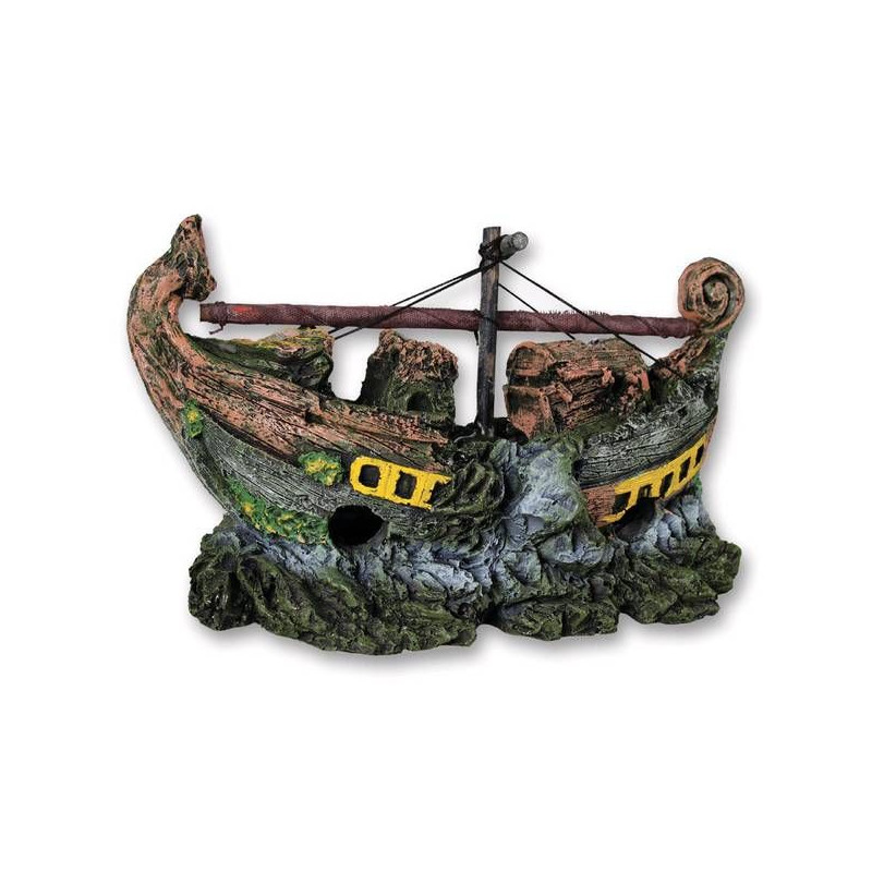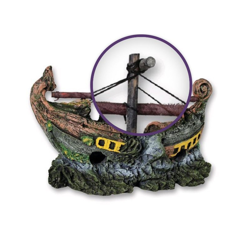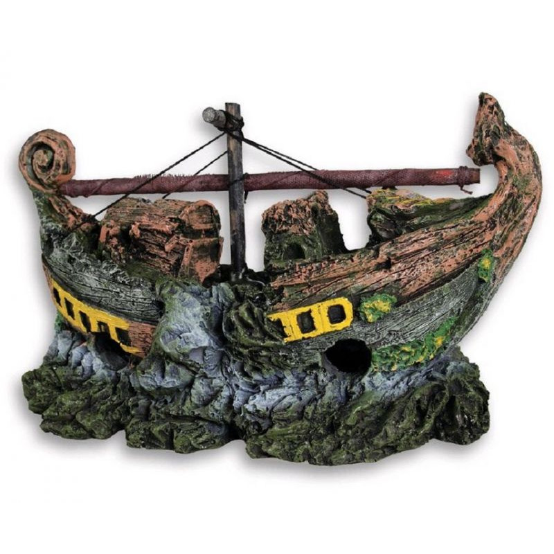 Dekorace PO-058 Vrak lodi velký. Detailní zpracování této lodi vytváří v akváriu jedinečnou atmosféru. Poskytne vašim rybám úkryty a místa ke hře.