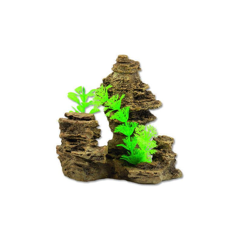 Akvarijní dekorace Skála s rostlinou 14 cm zkrášlí prostor, ale také poskytne úkryt a bezpečné místo pro ryby, čímž přispěje k jejich pohodě. Je vyrobena z kvalitního, nezávadného materiálu, který je vhodný pro akvárijní nádrže..