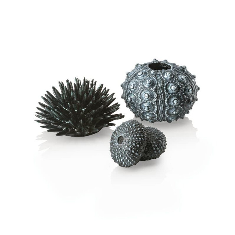 Mořské dekorace biOrb sea urchins set black v realistickém provedení pro Vaše akvárium. Sada mořských ježovek z odolného materiálu. Dekorace moře černý ježek jsou složeny ze tří variant. Ježovky jsou pro obyvatele akvária zdravostně nezávadné. Před umístěním do akvária je třeba ježky opláchnout čistou vodou. S přírodní sadou mořského ježka můžete na dně vaší nádrže nastavit zcela nové akcenty a podtrhnout moderní design biOrb.