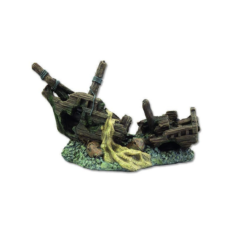 Aqua Excelent dekorace Vrak lodi 22 cm. Tato realistická imitace vraku lodi nejenže skvěle vypadá, ale také poskytuje vašim rybám bezpečný úkryt a zajímavé prostory k prozkoumání.