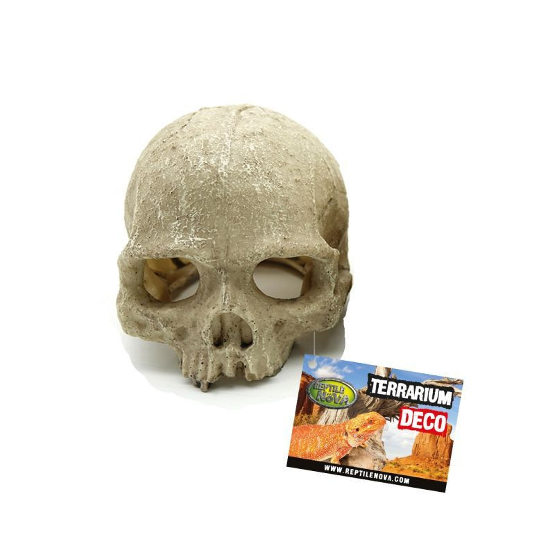 Realisticky vypadající dekorace do terária REPTILE NOVA Lidská lebka se stane nejen zajímavou ozdobou, ale také poskytne vašim plazům či obojživelníkům bezpečný úkryt.