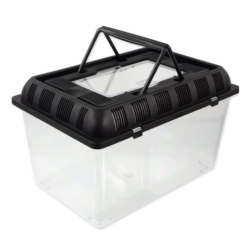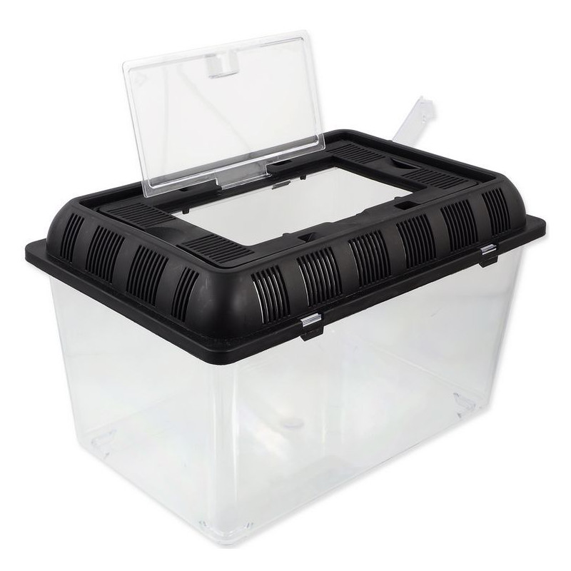 Box je vybaven větracími otvory na bočních i horních stranách, což zajišťuje dostatečné proudění vzduchu. Průhledný plast umožňuje pozorování živočichů, zatímco pevná konstrukce zaručuje, že nikam neutečou.