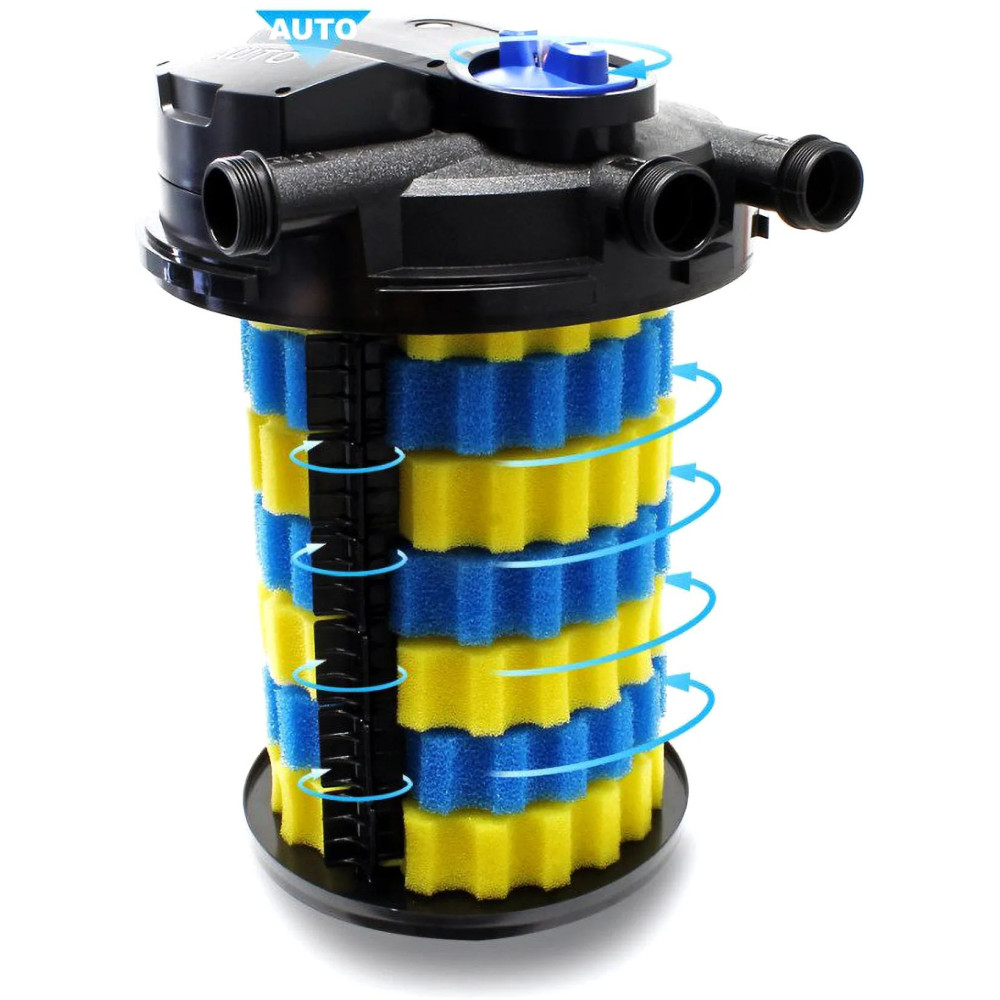 Tento filtr obsahuje plně automatický systém čištění, který velice usnadňuje provoz filtru. Obsluha je velice jednoduchá, pouze vypnete přívod vody do filtru. Přeměníte směr vytékání vody přepínačem a spustíte cyklus čištění společně s čerpadlem. Po 60 sekundách se filtr vyčistí a špinavá voda odteče odtokovou trubicí, kterou si navedete kam chcete.