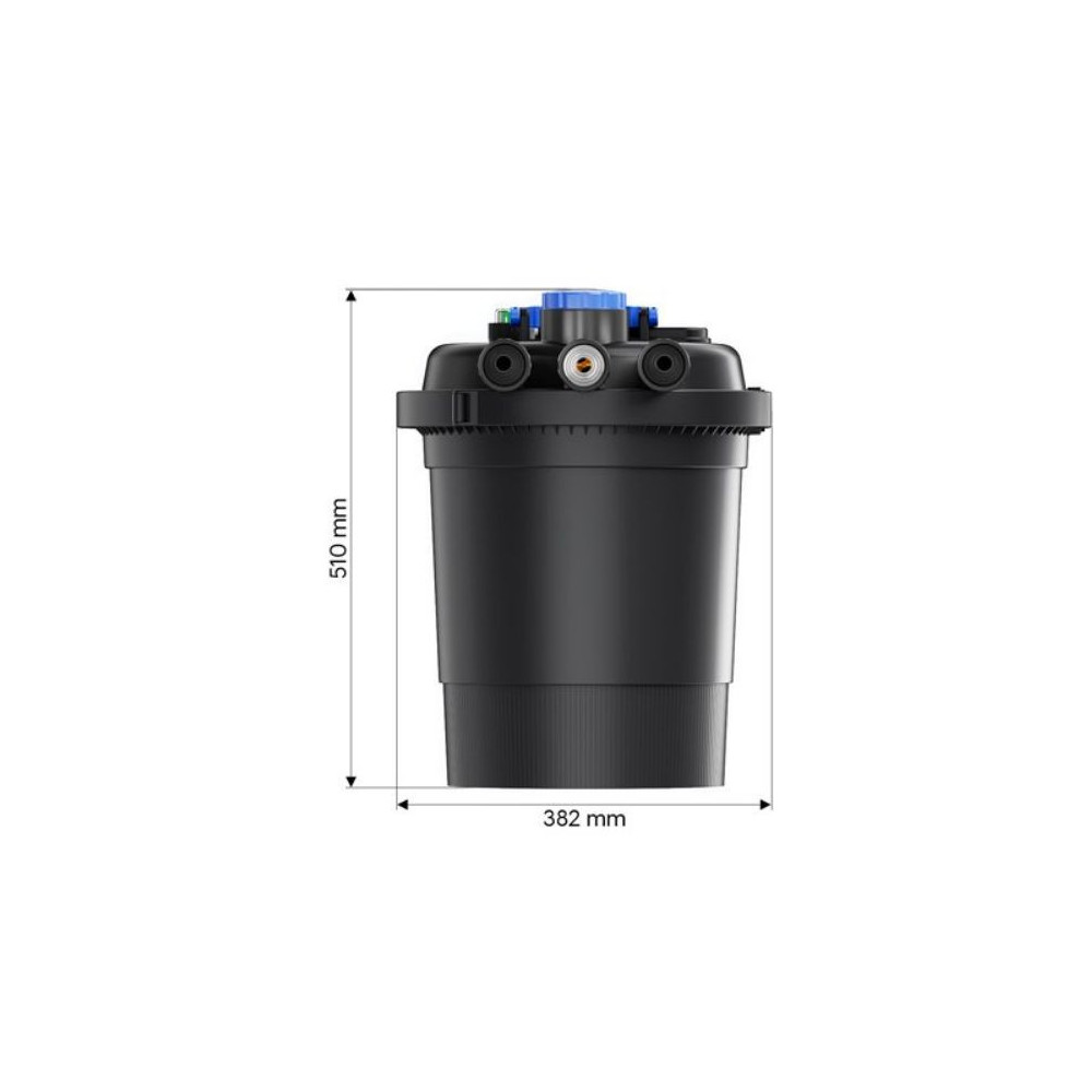 • Maximální flexibilita: Filtr je uzavřený, takže jej můžete umístit nad i pod úroveň hladiny (např. částečně zakopat do země), aby nenarušoval vzhled zahrady.