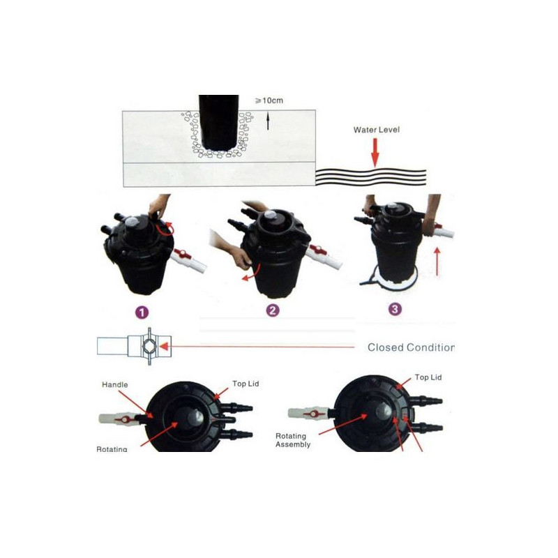 Materiály odolné proti nárazům a povětrnostním vlivům zaručují, že filtr přečká roky provozu u vašeho jezírka. Díky stupňovitým hadicovým trnům (součástí balení) snadno připojíte běžné jezírkové hadice různých průměrů.