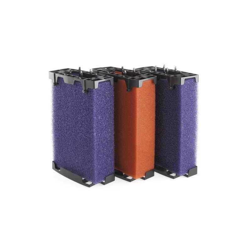 Náhradní set molitanů do tlakového filtru se skládá z filtračních hub a je možné je podle potřeby jednoduše vyměnit. Objem filtrace po výměně pěn je 9 l jako dříve a filtrační plocha pro čistou vodu v jezírku je 10,5 m³.