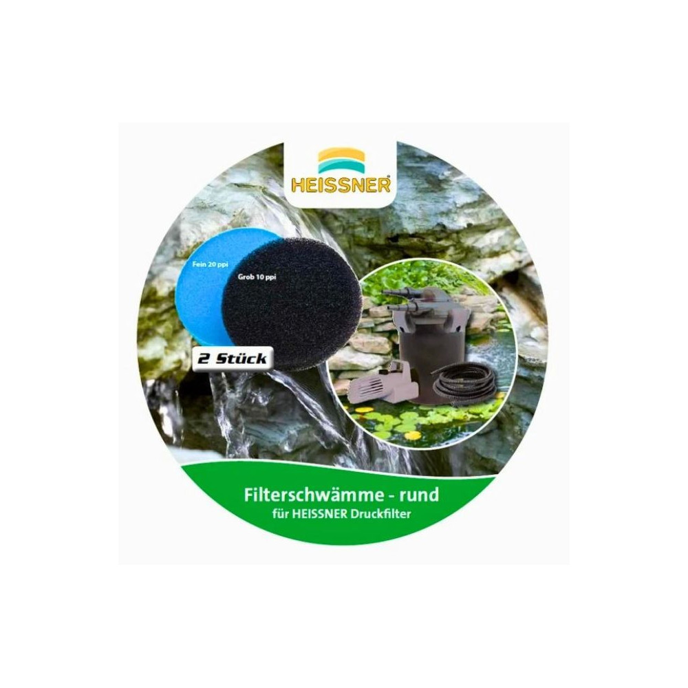 Heissner náhradní filtrační pěny ZF832-00 do filtru hrubá 10 ppi a střední 20 ppi kulatá. Balení 2 ks, Průměr 22,5 x 7 cm
