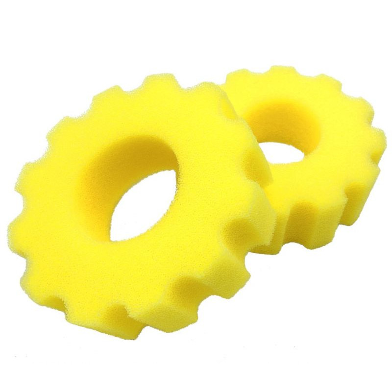 Náhradní sada molitanů pro tlakový filtr INVITAL 1500 s UV obsahující dva kusy molitanů. Každý má průměr 18 cm, otvor 7,5 cm výška 5 cm.