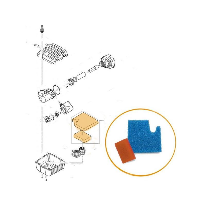 Náhradní set molitanů do tlakového filtru se skládá z filtračních hub a je možné je podle potřeby jednoduše vyměnit. Objem filtrace po výměně pěn je 9 l jako dříve a filtrační plocha pro čistou vodu v jezírku je 10,5 m³.