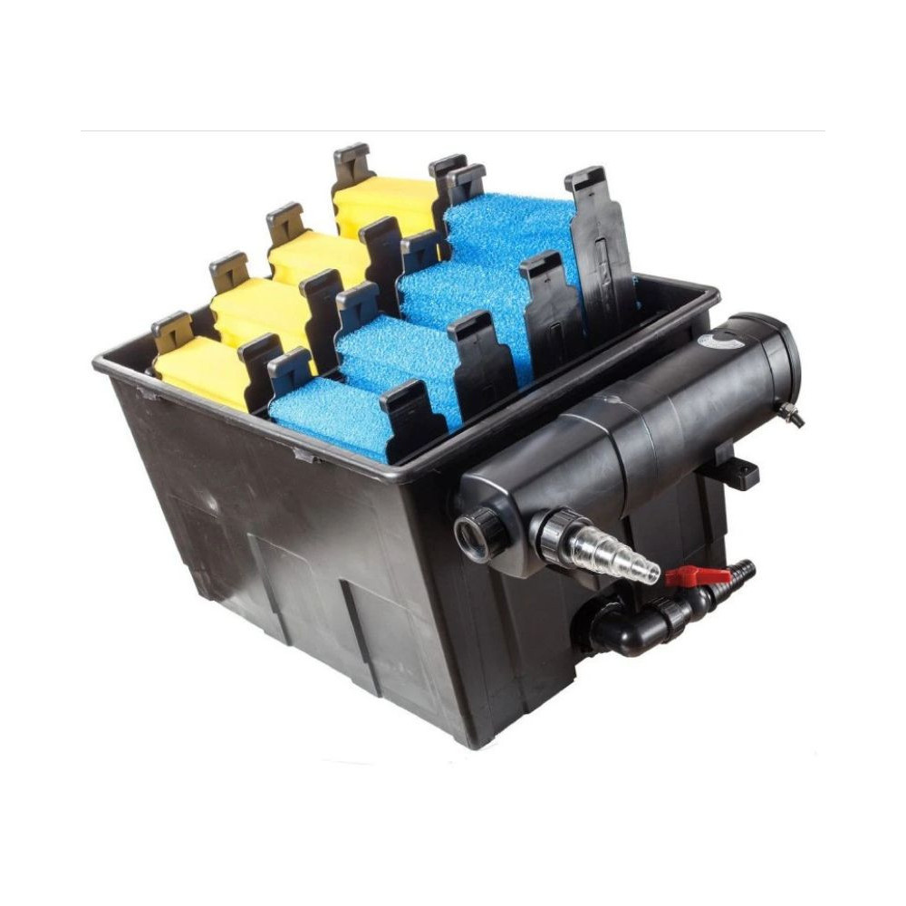 Beztlakový filtrační set pro jezírka obsahuje filtr, UV lampu a čerpadlo F-12000 a 5m hadice 1 1/4". Je vhodný pro okrasné nádrže do 25m3 a s koi do 8m3.