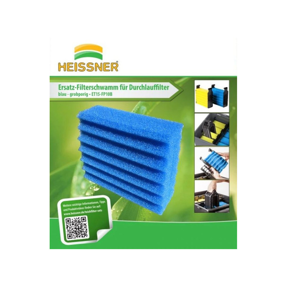 Filtrační pěna do průtočných filtračních jezírkových čističek OMEGA, Akwado a Hessner. Molitan modrá houba je hrubá a slouží také pro osídlení denitrifikačními bakteriemi.