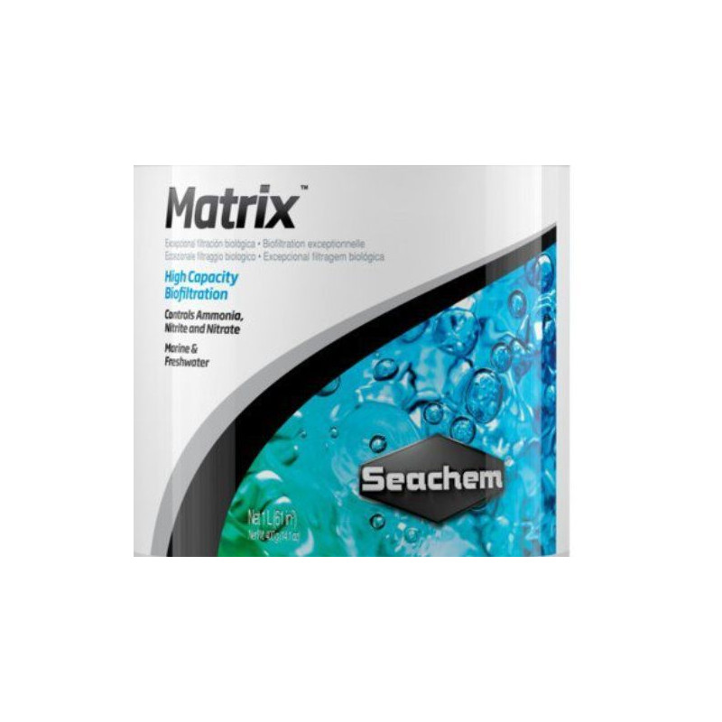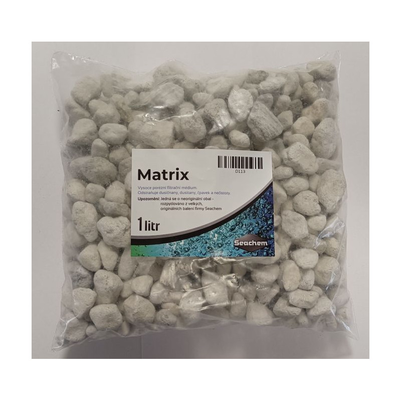 Seachem Matrix 1 l filtrační médium - jedna z nejúčinnějích náplní do akvarijních filtrů. Vysoká poréznost, kdy 1 l tohoto média poskytuje více než 700 m2 plochy životního prostoru čistícím bakteriím, zajišťuje vysokou filtrační schopnost.